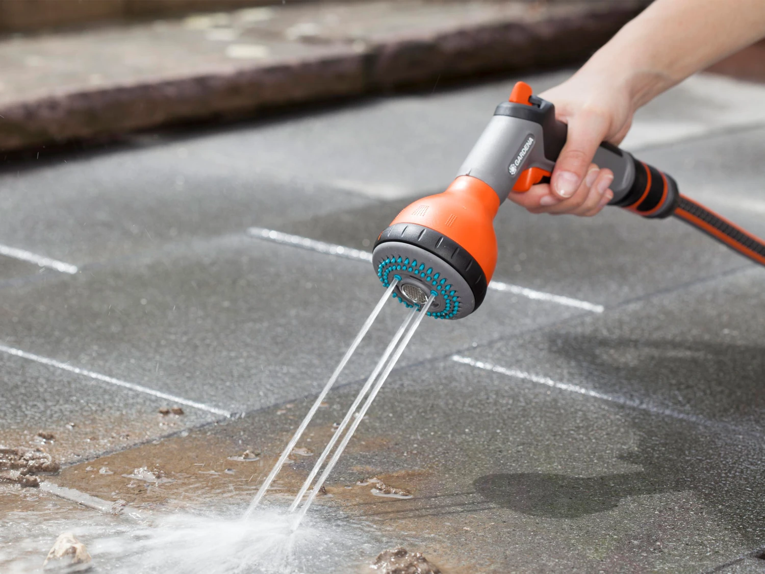 With the Gardena Classic Multi Sprayer you are best-equipped: The sprayer has three different water spray patterns. Soft plastic ring on the head to protect from damage.