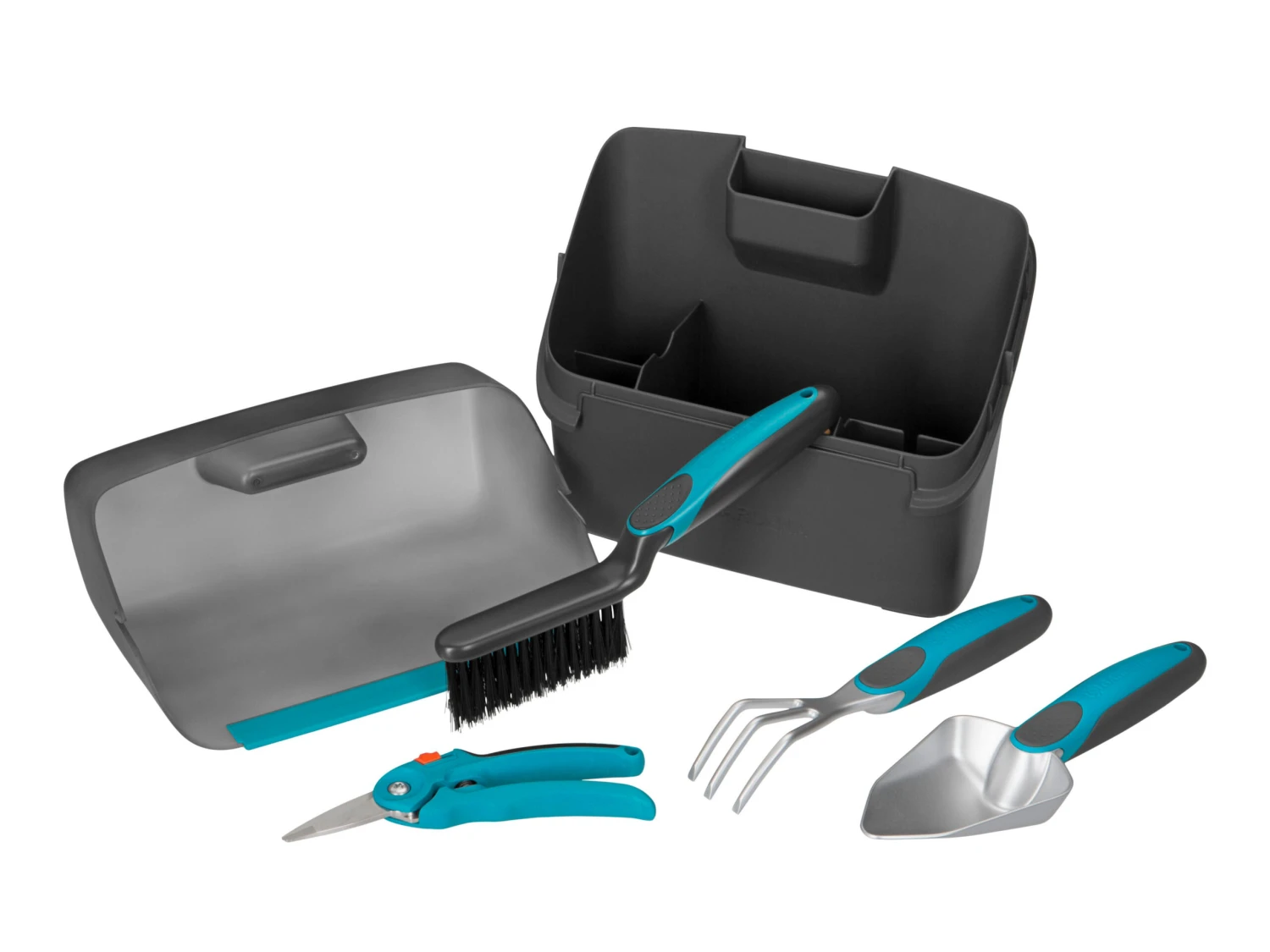 The Gardena Gardening Tool Kit is the perfect set for all balcony and terrace gardeners. This set includes a trowel, a grubber, secateurs and a hand brush.