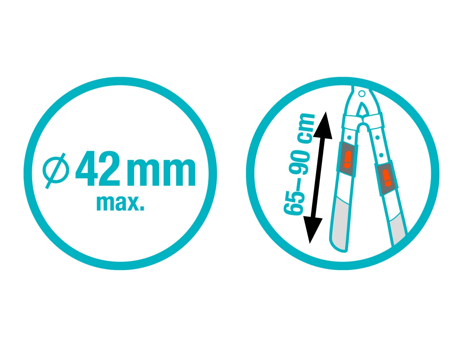Due to its low weight and the excellent lever action, the amount of effort required to cut is low. Length-adjustable lever arms also permit accurate cutting of higher branches.
