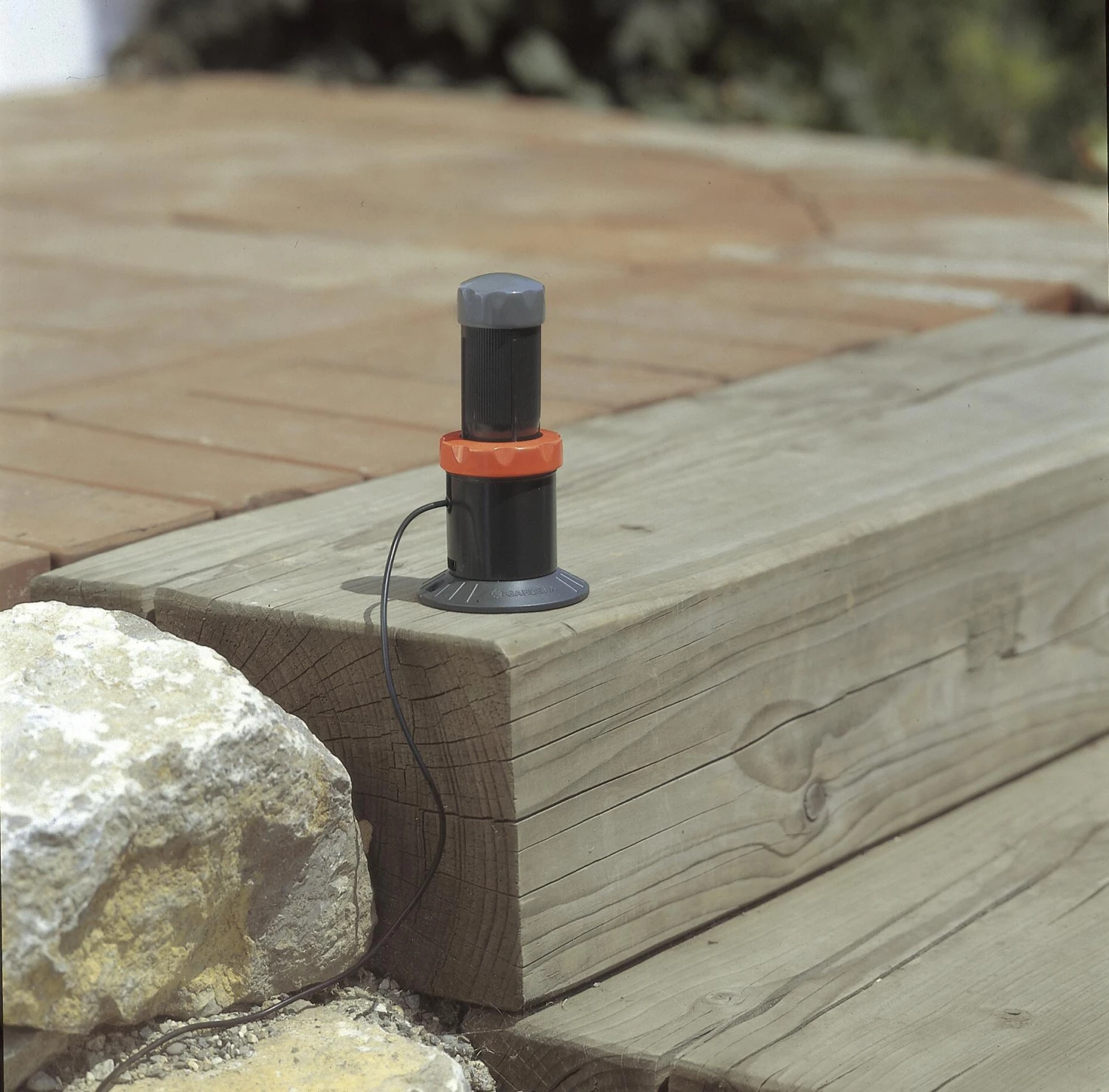 The sensitive optical lens detects the start of rainfall quickly. The Rain Sensor can be placed in a gravel-filled flower pot or directly on a solid surface. The length of the connection cable is 5 m.